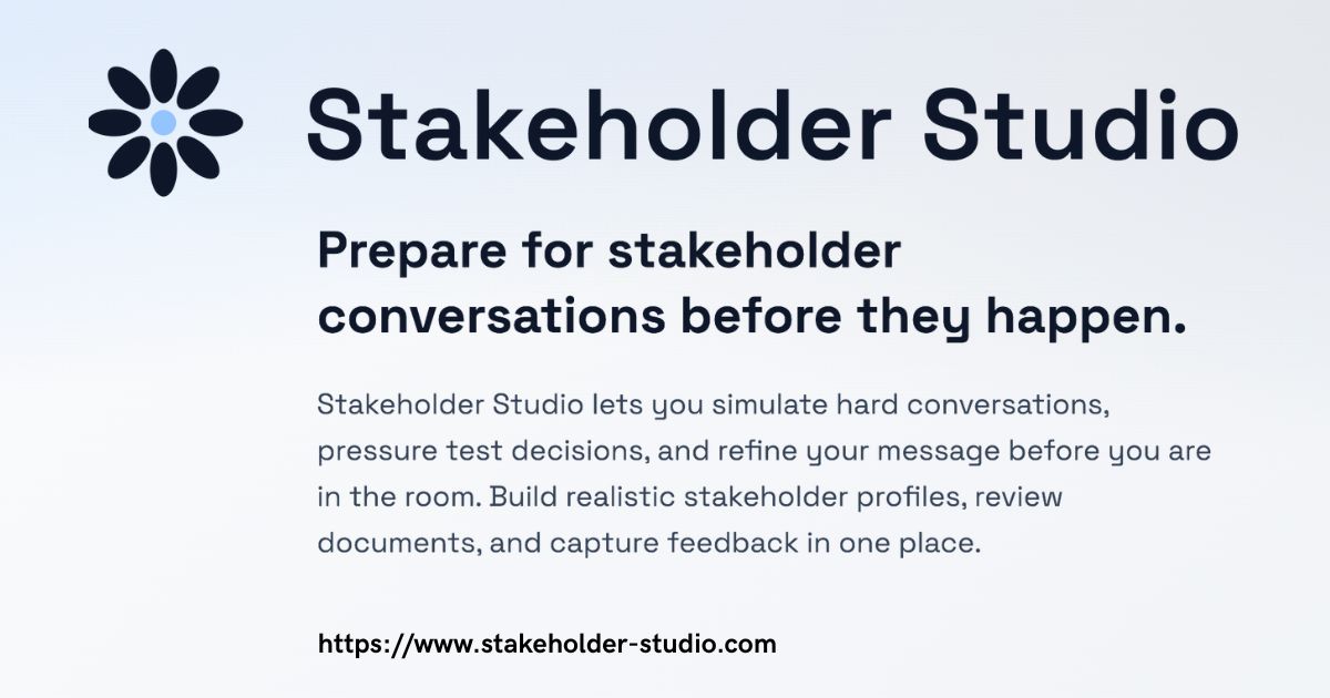 Stakeholder Studio lets you simulate hard conversations, pressure test decisions, and refine your message before you are in the room. Build realistic stakeholder profiles, review documents, and capture feedback in one place.